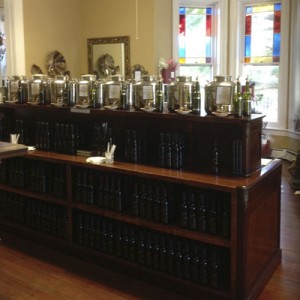 In the front parlor you will be introduced to the newest oils from California, Spain and Portugal. These regional oils will change over the months as Veronica Foods brings in the freshest oils from around the world and as the picking season varies from region to region. These oils are currently $17.99 for a 375 ml bottle. You will be educated on the region, the amount of polyphenols in each of the oils and the type of olives used. You are free to sample anything in the store. The specialty and gourmet oils are also found in this area, the decadent truffle oil ($33) , the richest and most flavorful sesame seed oil I’ve ever tasted ($23), and the sensuous walnut oil, ($23).