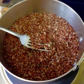 You can usually find quinoa at your local health food store and often at Asian grocers, if you happen to have a good one in your area. Many grocery chains are now carrying this delicious, nutritious grain. If you can’t find it in your area, many products are available on-line, often with free shipping. You can get much better prices if you buy in bulk quantities. Quinoa comes in black, red, white and mixed. The more colorful, the more antioxidants and, therefore, the more healthy!